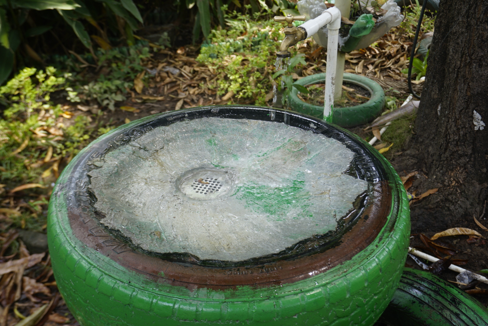 Posteriormente, Cristian con unas cuantas herramientas, rompe la parte baja de la cañería donde pasa directamente el agua y realiza una conexión hacia las plantas del patio. Días después de medir, tomar promedios y evaluar el comportamiento de consumo y desperdicio, encontró que era urgente aprovechar el líquido para el lavado de baños y riego de las plantas.
