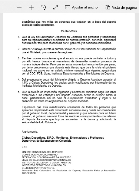 Seis puntos hacen parte del comunicado emitido por más de 400 entrenadores, presidentes de liga del baloncesto nacional quienes se reunieron de manera virtual para hacer un llamado al Gobierno Nacional, “nos unimos en un clamor para que el Gobierno Nacional que nos tiene a parte a nosotros, al deporte asociado a los clubes privados, que hacemos parte de la línea nacional del deporte, por favor también nos ayuden y nos tengan en cuenta porque realmente nos tienen a un lado, el manifiesto que enviamos es de entrenadores, todos los presidentes de liga de Colombia y esperemos esto llegue al Ministerio del deporte” comentó Edwin Velázquez presidente de la liga de baloncesto de Huila.