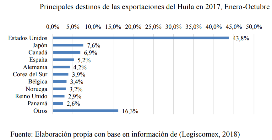 Durante el mismo el periodo de 2017, respecto a los países de origen de las importaciones de Huila, Estados Unidos después de China fue el mayor proveedor con 18,9% y un total de US$1,38 millones CIF.