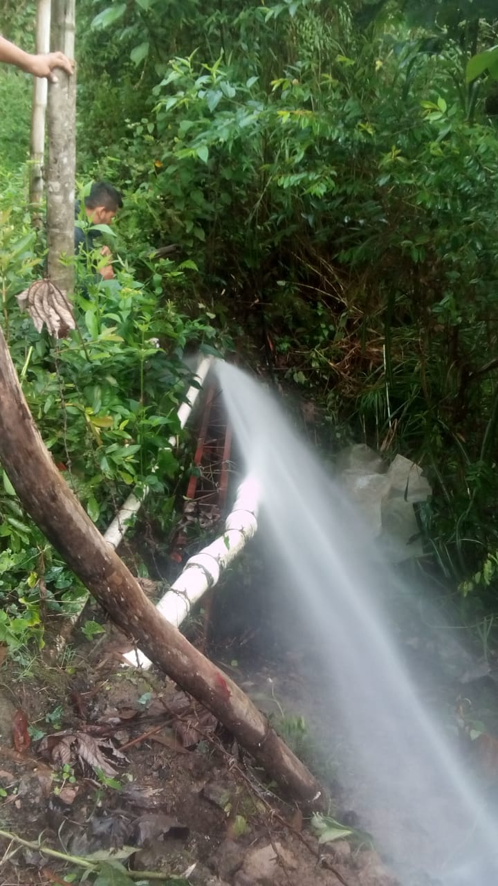 Sin embargo, y pese a las lluvias que han caído en la zona, el problema de abastecimiento persistía con cantidades mínimas de agua que llegaban al acueducto; de ahí que se organiza un rastreo para detectar el problema, el cual dejó en evidencia que en un predio de la vereda Holguín, personas inescrupulosas habían incrustado varios elementos con los que se causó un grave daño que debió ser reparado en las últimas horas.