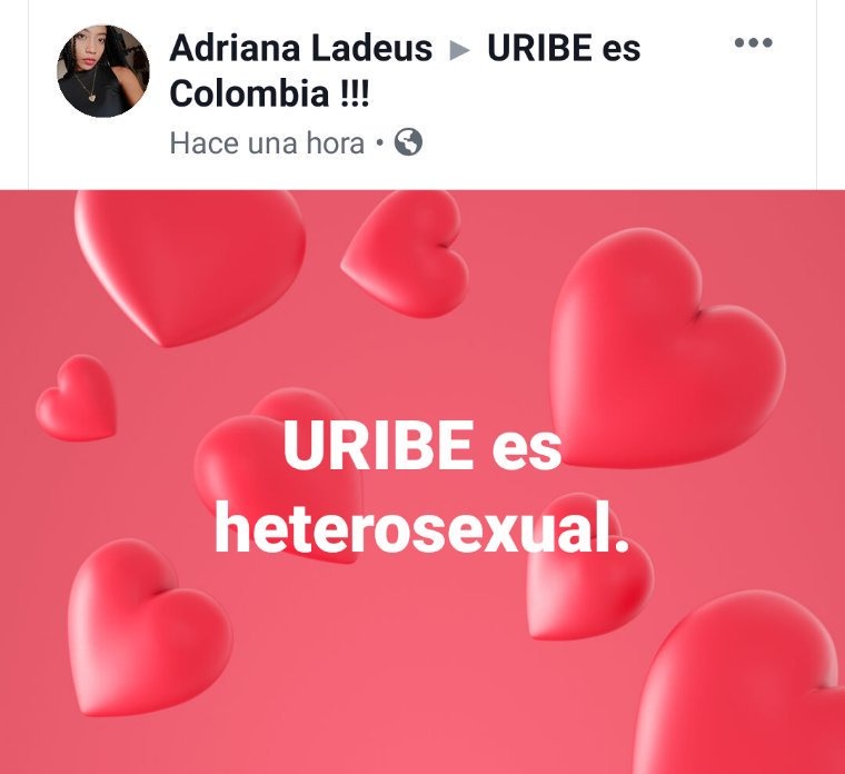 Todo comenzó con una publicación de una joven en Facebook donde afirmaba que “Uribe es Heterosexual” acompañado con una imagen de corazones. A lo que un ejército uribista respondió con repudio a la imagen de la joven.