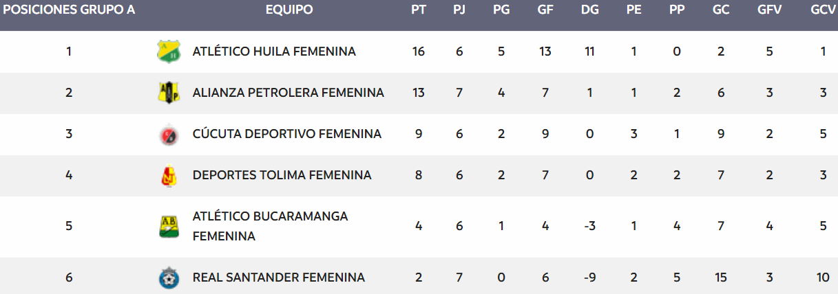 El elenco que orienta Virgilio Puerto, líder invicto del Grupo A con 16 puntos,disputará la octava fecha ante Cúcuta Deportivo el miércoles 25, en hora por confirmar. Las ‘Motilonas’ son terceras en la tabla con 9 puntos y vienen de igualar 1-1 ante Real Santander. Huila por su parte, superó 2-0 a Alianza Petrolera en su