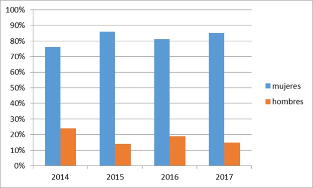 Para el 2017 fueron valoradas 255 víctimas, con un total 217 en mujeres y 38 hombres. De las cuales 189 casos de delitos sexuales se cometieron en una vivienda, principalmente de la víctima.