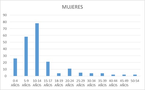 Lamentablemente, el mayor número de casos se presentaron en las mujeres o niñas, quienes suelen ser las victimas más recurrentes y las agreden casi en todas las edades. Respecto a la edades más frecuentes, las estadísticas indicaron que en de los hombres afectó al rango de edad entre 0 a 14 años; y en las mujeres de 0 a 17, es decir el valor mayor de las victimas suelen ser menores de edad.