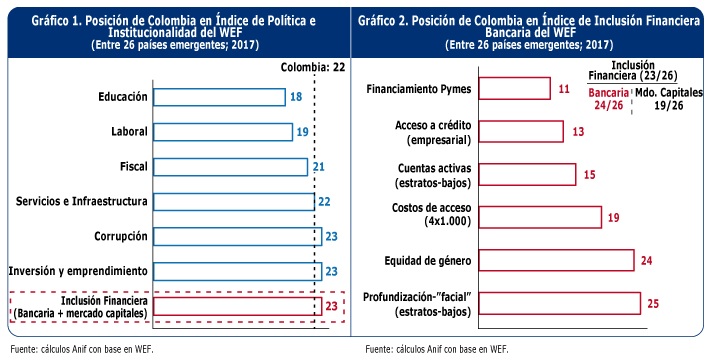 El país ocupa la posición 23 entre 26 países-emergentes según la Asociación Nacional de Instituciones Financieras (ANIF). Para lograr mayor profundización financiera Colombia debe enfrentar grandes retos.