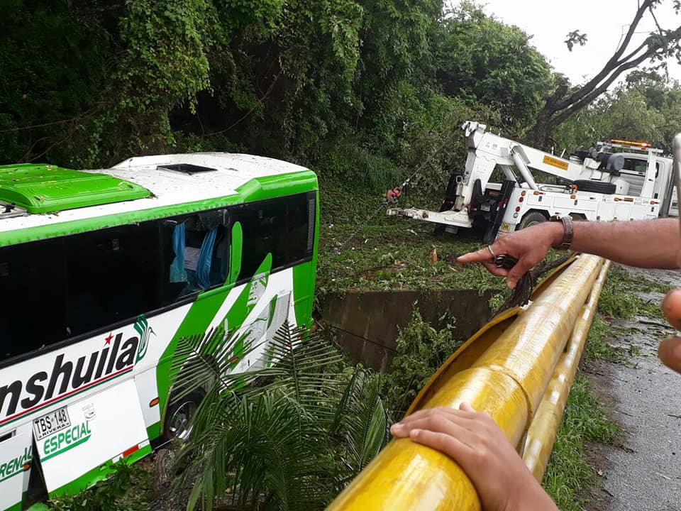 Al parecer un vehículo adelanto y generó que el bus se saliera de la vía informan las autoridades de Policía de Carretera.