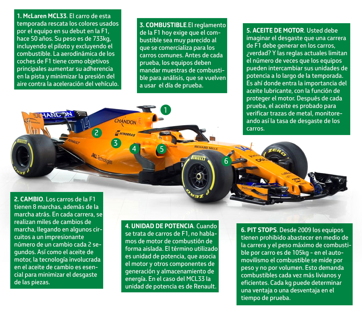 Sin duda, detrás de las carreras ocurren muchas curiosidades que no todos conocen, por ello, en el inicio de la temporada, los expertos de la Petrobras se pusieron en la tarea de definir algunos datos para que los aficionados conozcan más de la movida en la Fórmula 1 con McLaren.