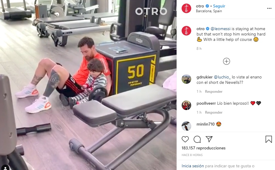 El argentino Lionel Messi del Barcelona también se mostró entrenando junto a su hijo menor Ciro.
