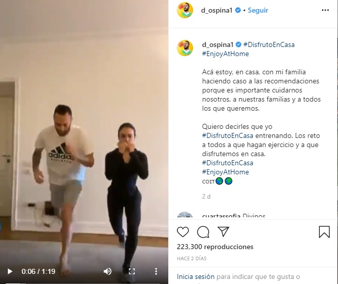 Así mismo el arquero del Napoli David Ospina subió una rutina en sus redes sociales, y escribió, “acá estoy, en casa, con mi familia haciendo caso a las recomendaciones porque es importante cuidarnos nosotros, a nuestras familias y a todos los que queremos”.