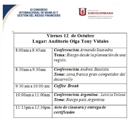 Con el propósito de estrechar los vínculos interuniversitarios con países como Ecuador, Argentina y Francia se desarrolla desde hoy en la Universidad Surcolombiana el III Congreso Internacional de Riesgo Financiero.