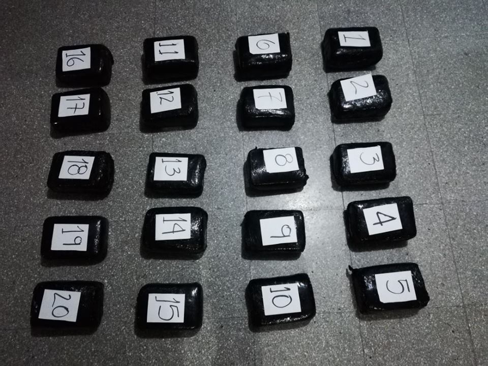 Allí los uniformados luego de verificar e inspeccionar el automóvil, hallaron el alcaloide distribuido en 20 paquetes sellados con bolsas de color negro y camuflados en el piso del automotor, como estrategia para no generar sospecha en los controles de las autoridades durante la ruta establecida.