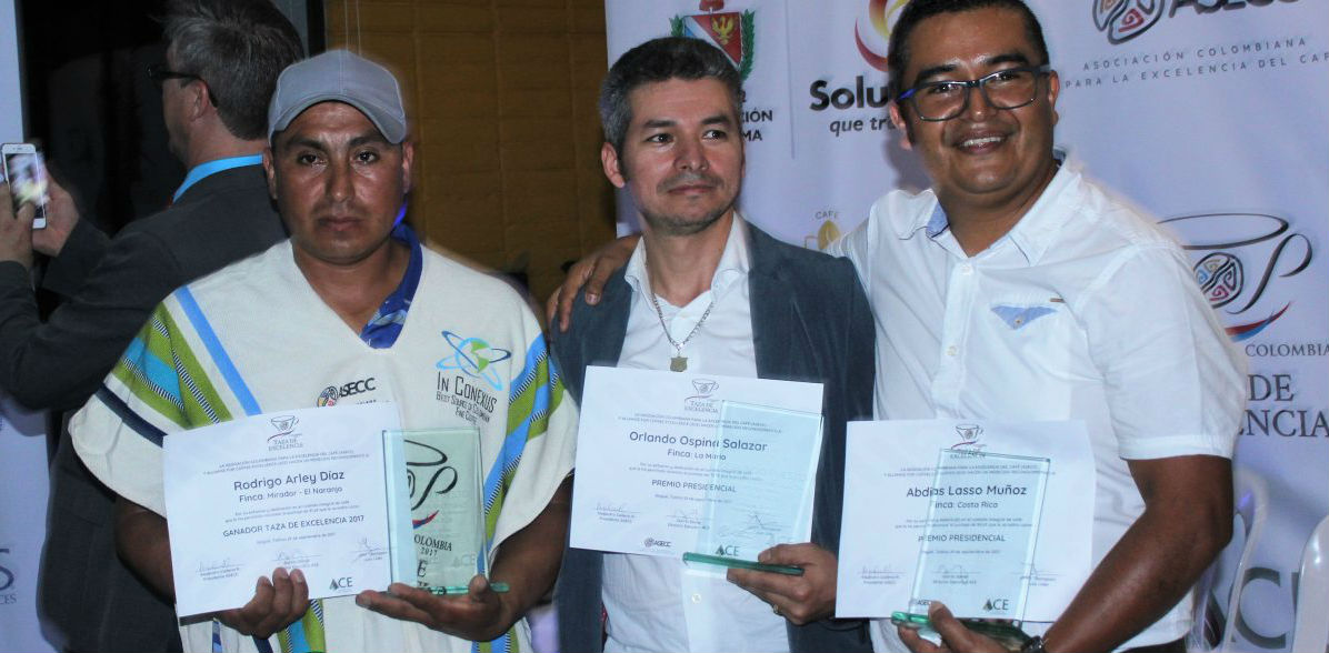 El ganador de la versión 2017 de La Taza de la Excelencia, con 91.28 puntos fue Rodrigo Arley Díaz del municipio de Buesaco Nariño.