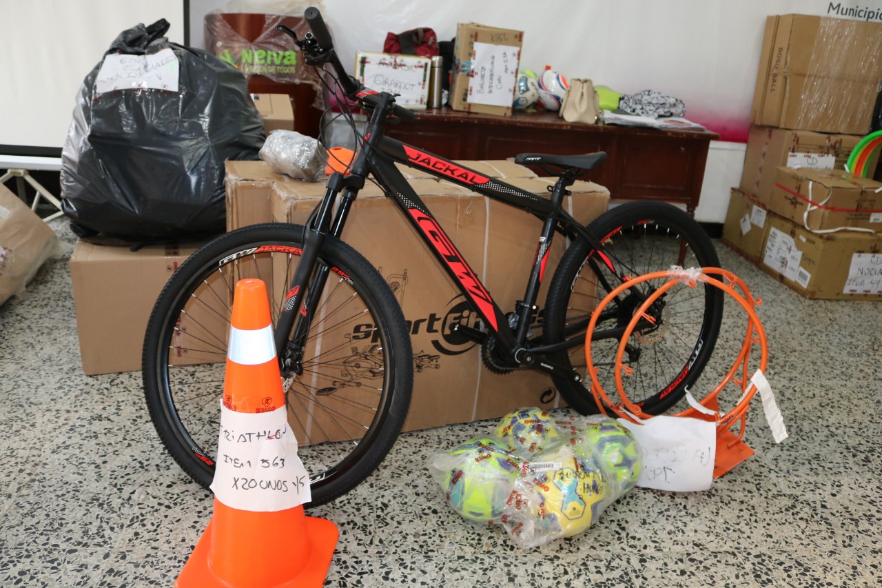 Así mismo se realizó entrega de bicicletas todo terreno, recumbent, juegos de pesas, bicicletas estáticas, material de gimnasio, colchonetas, uniformes, patines profesionales, entre otros elementos fueron entregados para los clubes y ligas legalmente constituidos en las disciplinas de taekwondo, judo, tenis de mesa, tenis de campo, fútbol, fútbol de salón, natación, subacuáticas, baloncesto, fútbol sala, tejo, deporte paralímpico, ajedrez, entre otros.