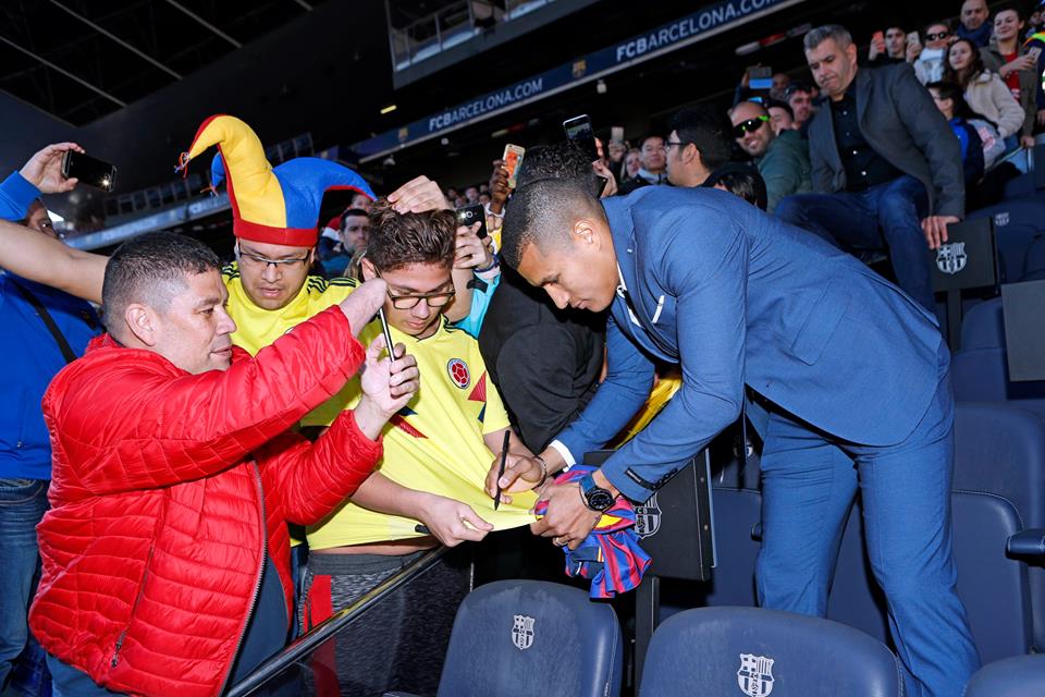 Todo el evento oficial se realizó en el estadio Camp Nou donde estuvieron miles de hinchas españoles e incluso colombianos, en la firma del contrato estuvo presente Josep María Bartomeu Presidente del Barca. Un hecho que fue llamativo fue la presencia de la hija de Jeison Murillo que también firmó el contrato, al final piso el césped, demostró habilidad con el balón y firmó algunos autógrafos.