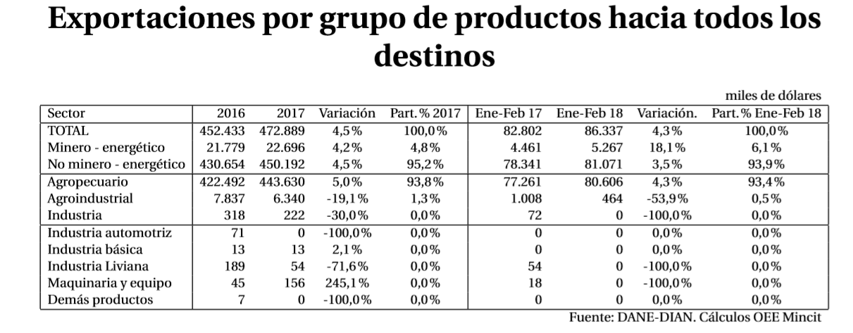 En estos acuerdos, también se exhibe un saldo positivo de la balanza comercial no minero-energética con una participación de 5% para el año 2017, mientras que, en enero de 2018, estos saldos muestran una participación de 80.7%. Así lo revelaron las más recientes cifras de MinComercio.