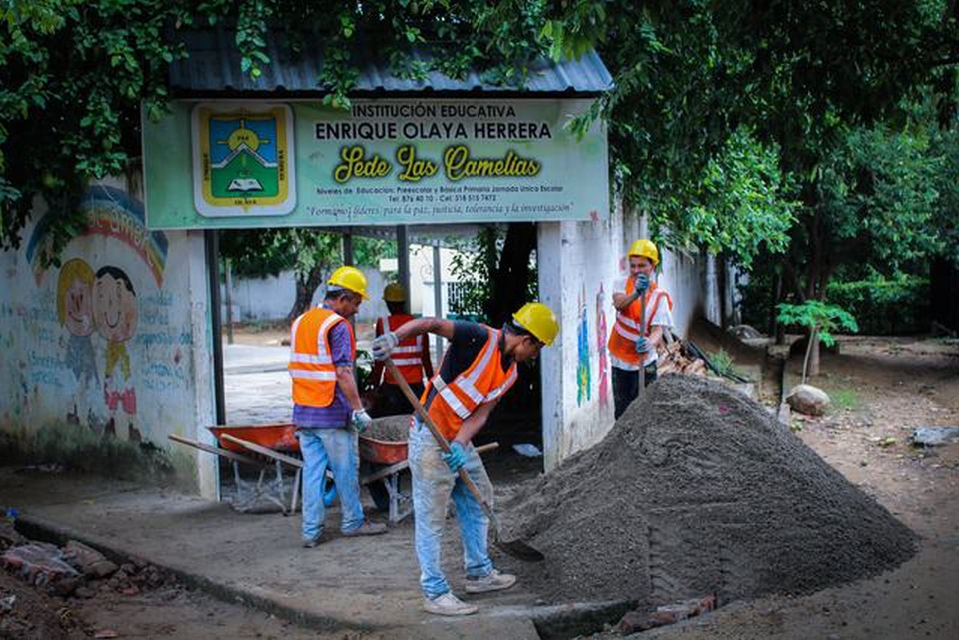 La escuela Enrique Olaya Herrera se encuentra en remodelación, por ende parte de sus alumnos deben recibir clases en la parroquia San Francisco de Asís.