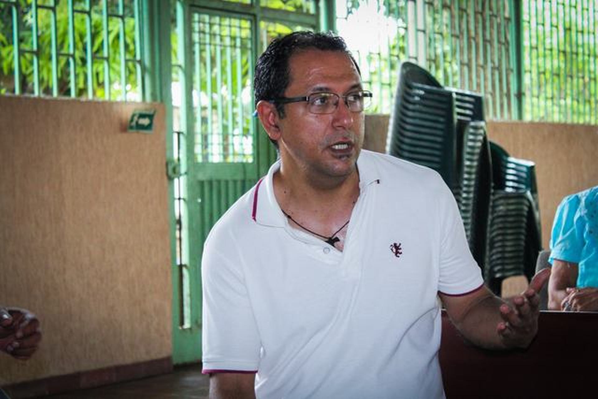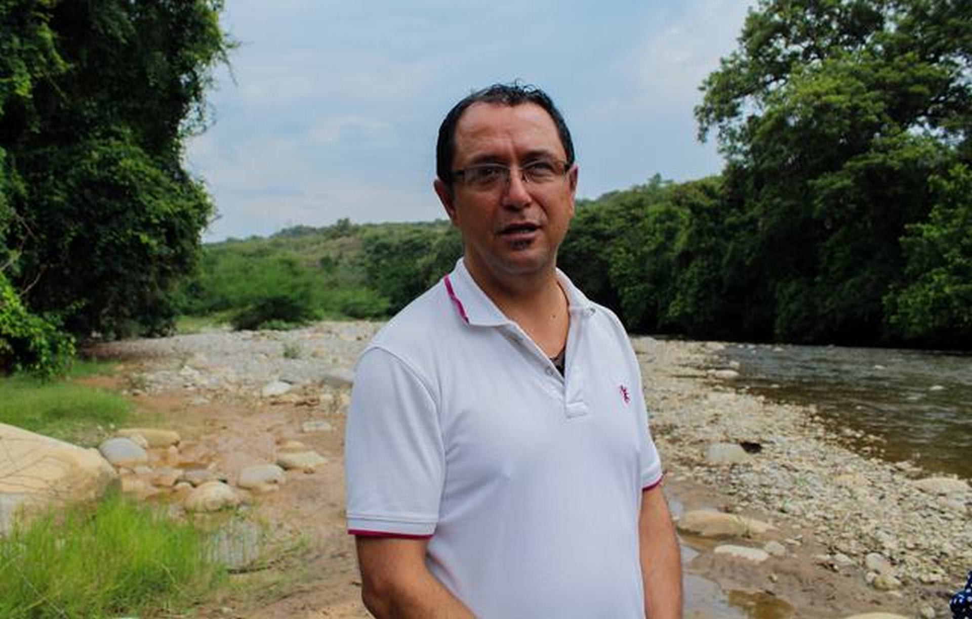 El párroco Luis Hernán Cobo en el sector conocido como la vuelta al cacho, lugar donde se deben ir bañar o lavar ropa los habitantes de Las Camelias cuando restringen el servicio del agua.