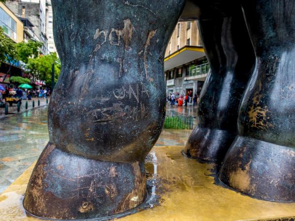 Cuatro esculturas del artista Fernando Botero, símbolo de arte y cultura en Medellín, amanecieron totalmente dañadas con grafitis, fuertes golpes y aruñones con objetos cortopunzantes. Estas afectaciones ya están en manos de las autoridades.