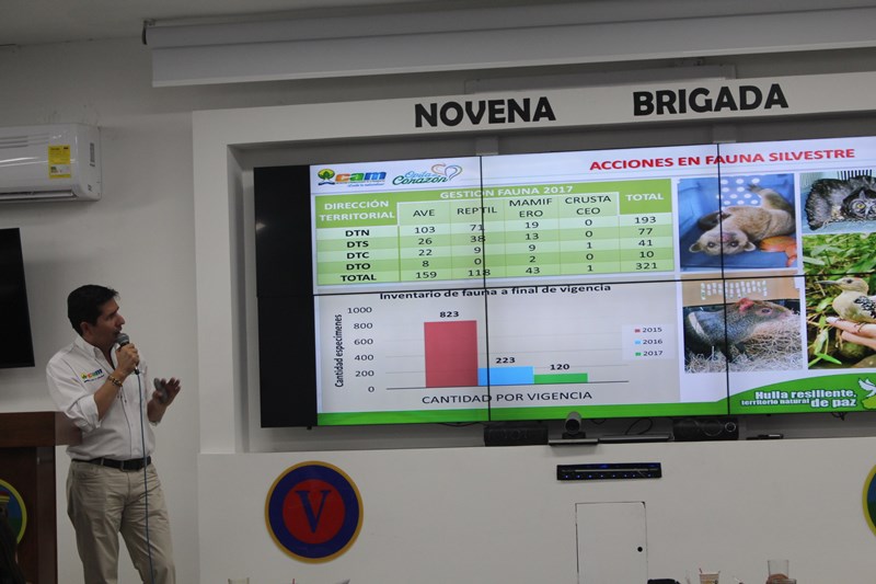En las instalaciones de la Novena Brigada, se dieron cita el Viceministro de Medio Ambiente, Carlos Alberto Botero López, la Gobernación del Huila, la CAM, IDEAM, las Alcaldías, Fuerza Área, Policía Nacional, Fiscalía, CTI, Procuraduría Ambiental y Agraria, Parques Nacionales Naturales y Defensoría del Pueblo, con el objetivo de conformar la organización que realizará monitoreo, prevención, control y vigilancia de los motores de deforestación detectados en territorio huilense.