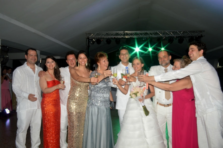 María Paula Gutiérrez Leiva y Juan Camilo Gómez Orozco contrajeron nupcias por la religión católica. La ceremonia se ofició en la Capilla del Club Campestre de Neiva, y la fiesta, que estuvo por todo lo alto, tuvo lugar en el Salón Principal de esa prestigiosa corporación social.