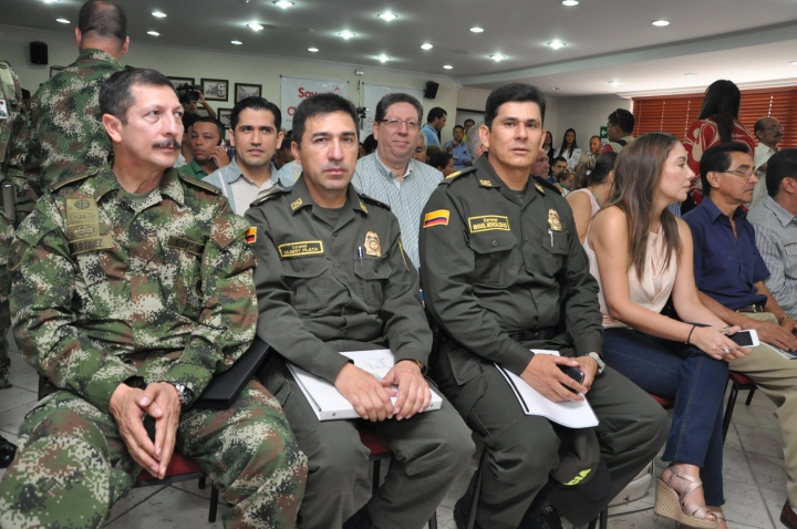 En el Auditorio Empresarial de la Cámara de Comercio de Neiva, se llevó a cabo un conversatorio en el que hizo presencia el ministro de Defensa, Juan Carlos Pinzón, y el general Rodolfo Palomino.