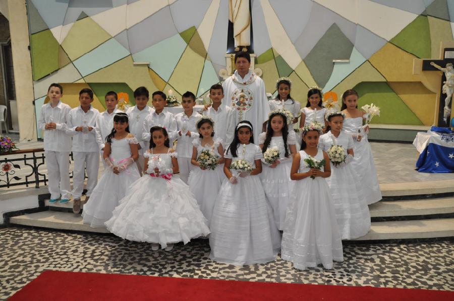 Hannah Nicole Montealegre Olarte hizo su primera comunión en la Parroquia Nuestra Señora del Perpetuo Socorro de Neiva acompañada de sus compañeros de colegio y sus padres.