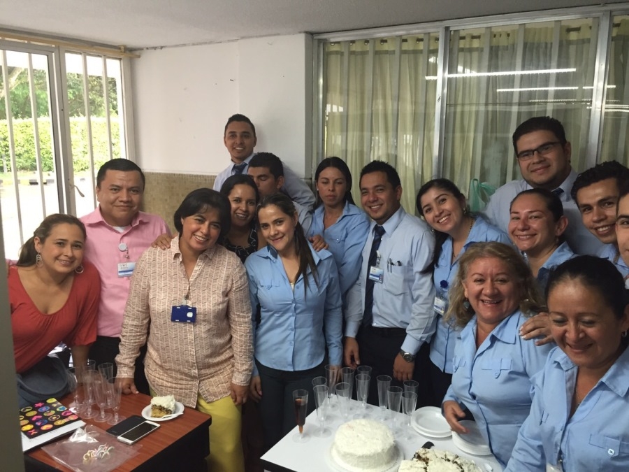 A Diana Victoria Muñoz Muñoz, gerente del Hospital Departamental San Antonio de Pitalito, funcionarios de la oficina de facturación y contratación le celebraron su cumpleaños.