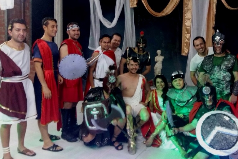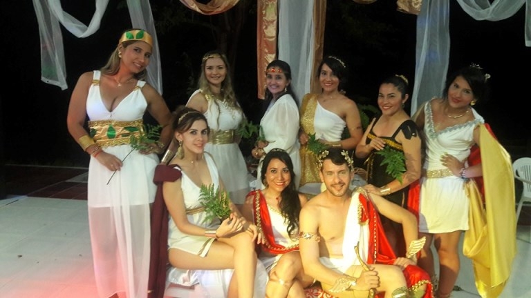 Con una fiesta al estilo greco-romano, la veterinaria Luisa Valenzuela Ramírez y el comunicador Luis Alfonso Sánchez Lozano, celebraron sus cumpleaños. El festejo tuvo lugar en una casa campestre en inmediaciones de Palermo.