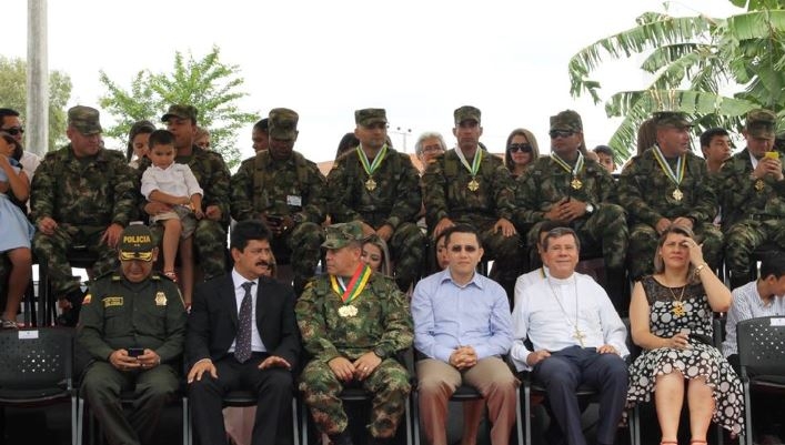 Entrega de condecoraciones Escudo del Huila a los comandantes de las Fuerzas Militares destacados por su labor en la región.