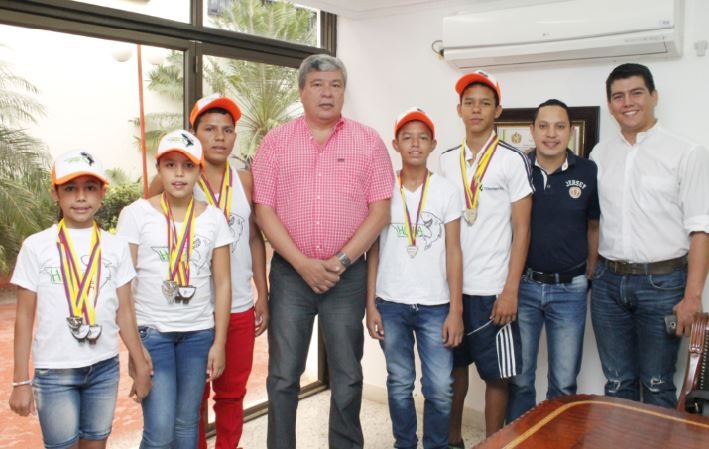 Niños deportistas del Club Subacuáticas de Comfamiliar Huila entregaron medallas al director administrativo Luis Miguel Losada Polanco, como agradecimiento al apoyo que les ha brindado.
