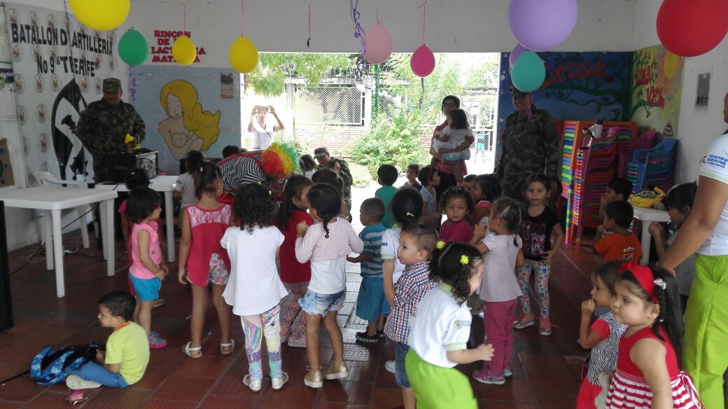 En la ciudad de Neiva, la labor de la unidad de Artillería se concentró en el Centro de Desarrollo Infantil Minuto de Dios, llevando alegría a los pequeños, quienes vivieron un día diferente gracias al show de payasos.