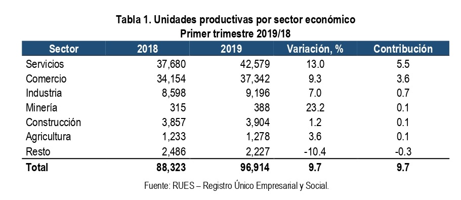 Las cifras de la CCN revelan que los sectores con mejor desempeño fueron Manufactura, que pasó de invertir en activos $57 millones en el primer trimestre de 2018 a $421 en el 2019, para un aumento del 638 %, y Comercio, que incrementó un 81 % el número de unidades productivas constituidas y 380 % la inversión en activos.