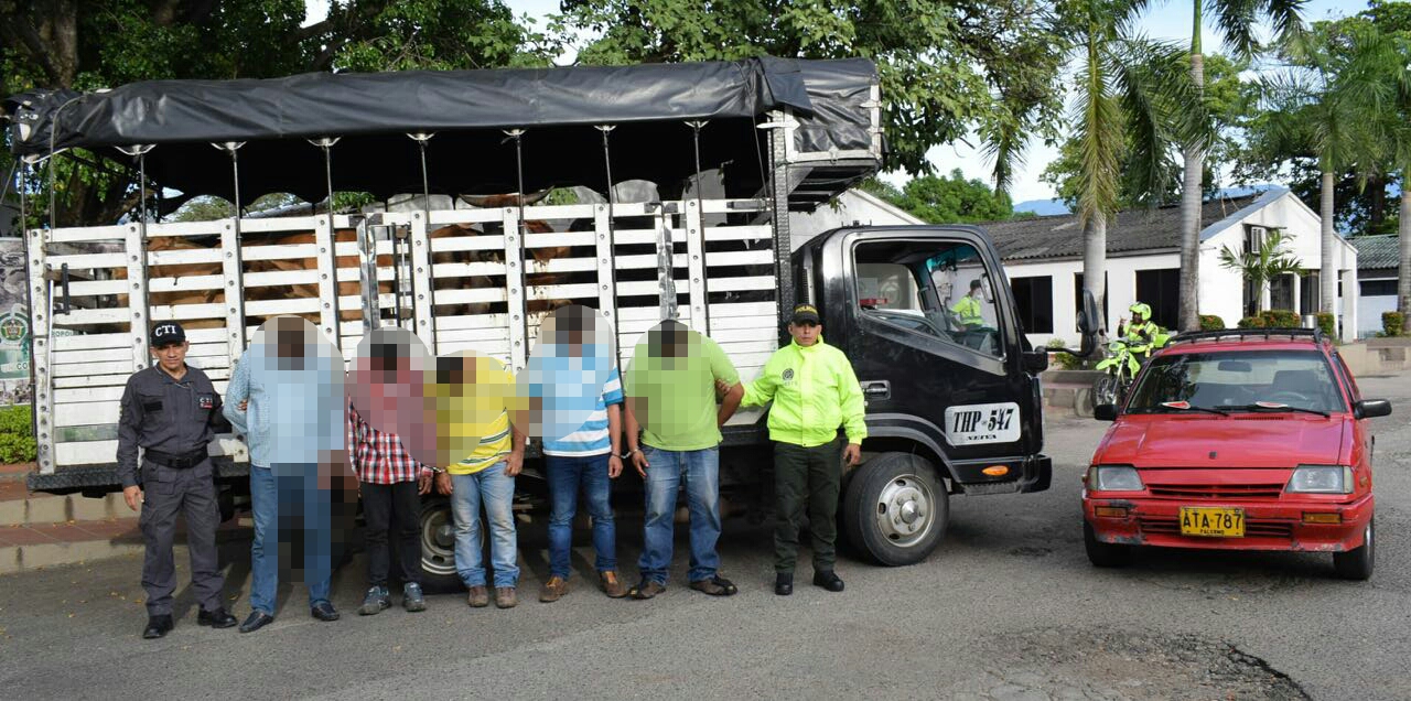 Las autoridades indicaron que gracias a información lograron encontrar a los cinco sujetos en flagrancia, quienes pretendían hurtar el ganado de una finca; los semovientes los tenían ya listos para ser subidos y transportados a bordo de un camión el cuales se hallaba de manera irregular en el lugar de los hechos.