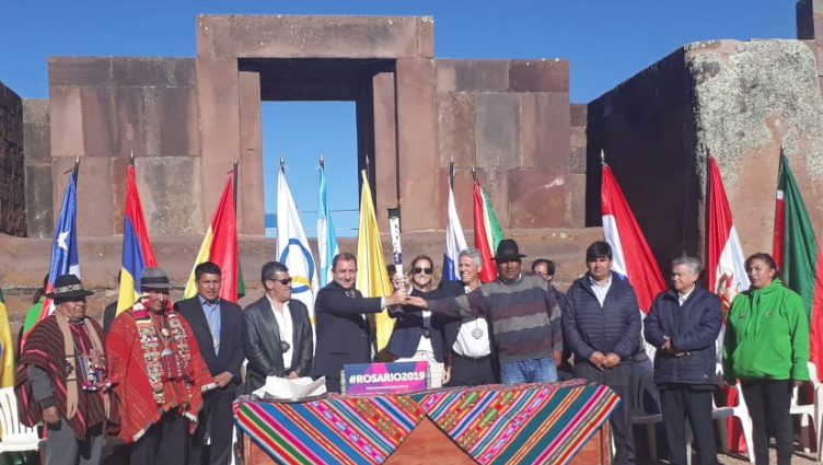 Así mismo la antorcha de las justas ya fue encendida en Bolivia desde el martes en una ceremonia que se realizó en Tiahuanaco, Bolivia, en el templo de Kakasasaya, frente a La Puerta del Sol, ahora el recorrido terminará en el 14 de marzo a las 8 pm en el Monumento a la Bandera en Rosario.