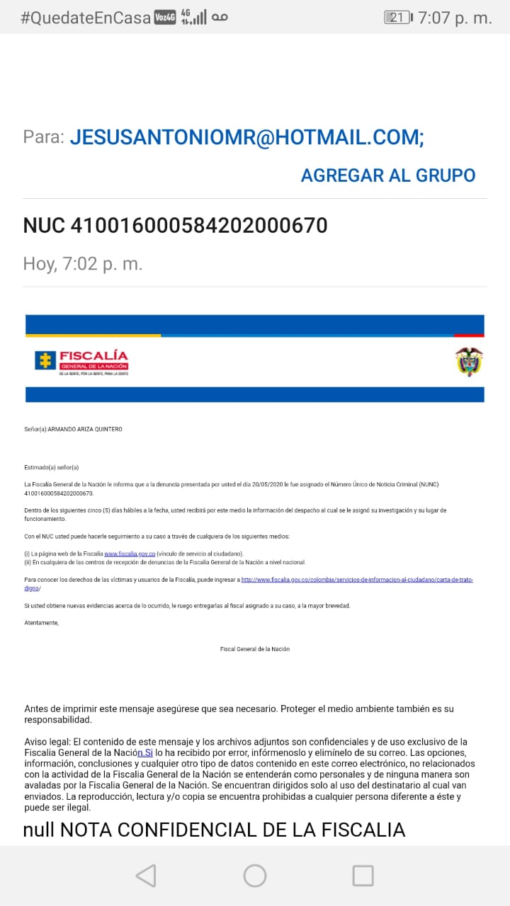 “Se puede evidenciar como el contenido del documento citado, video, atenta de manera grave contra el honor, la honra, el bueno nombre y la reputación de mi representado por ser falsas, violando así derechos fundamentales que protegen el Bloque de Constitucionalidad (Declaración Universal de los Derechos Humanos – Artículo 12 – Pacto Internacional de Derechos Humanos – Artículo 12 Pacto Internacional de Derechos Civiles y Políticos – Artículo 17 – y Convención Americana sobre Derechos Humanos o Pacto de San José de Costa Rica – artículo 11 y 14), y también por haberlas emitido en una red social en la cual puede ser visto por millones de personas en todo el mundo…”, indica la denuncia que ya fue radicada en la Fiscalía por el abogado Jesús Antonio Marín, apoderado de Ariza Quintero.