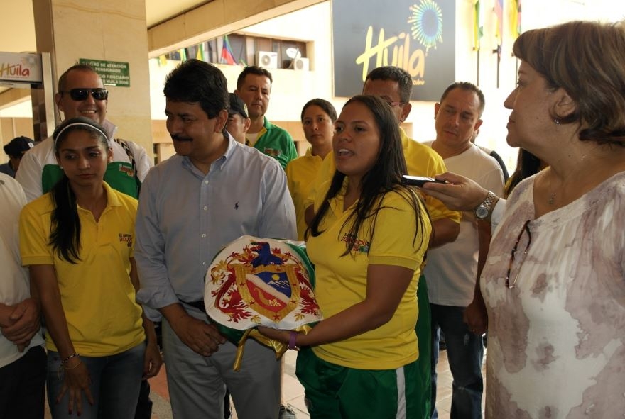 62 docentes de todo el departamento recibieron este domingo la bandera del Huila de manos del gobernador Carlos Julio González Villa, minutos antes de partir a Bogotá, donde participarán en los Juegos Deportivos Nacionales y el Encuentro Nacional Folclórico y Cultural del Magisterio.