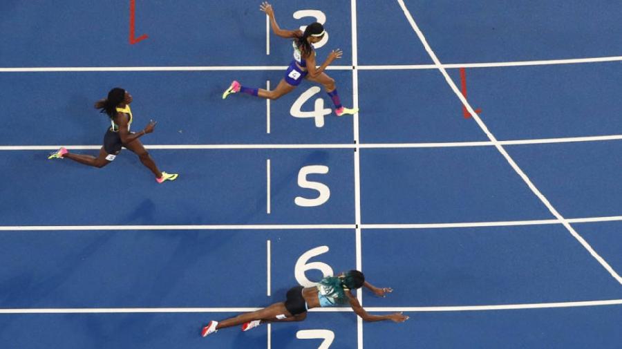 La atleta de Bahamas se tiró de cabeza para cruzar la línea en la final de los 400 metros. El reglamento no lo prohíbe. Su entrenador dijo que no fue intencional.