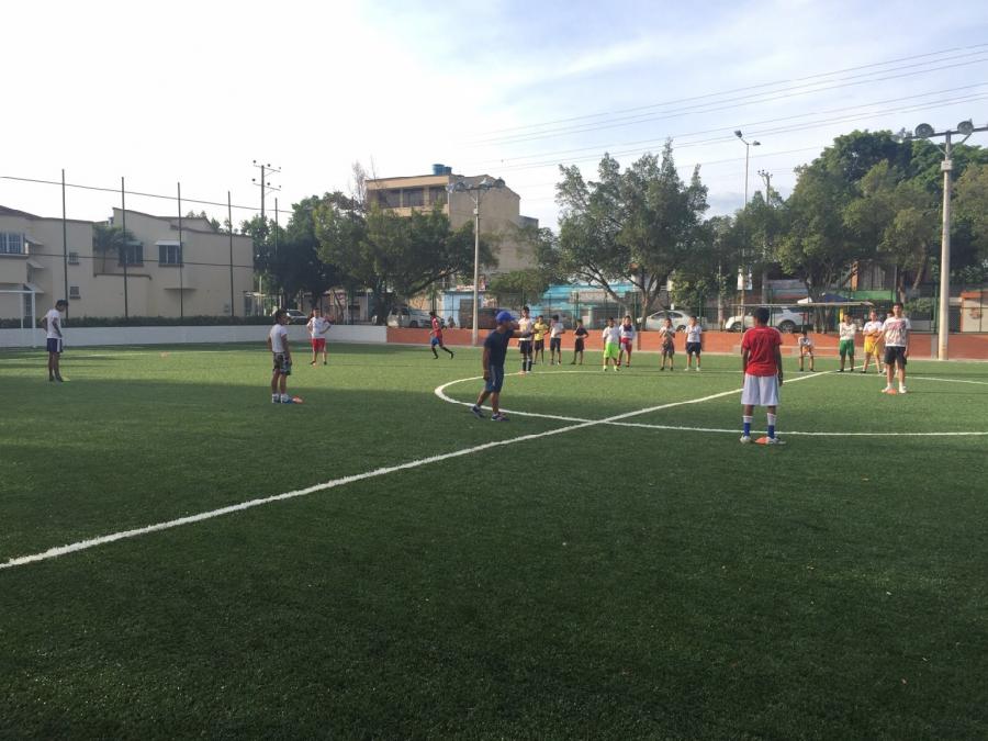 Más de 120 niños y jóvenes entre los 7 y 14 años de edad del programa Escuelas de iniciación y formación deportiva de la Alcaldía de Neiva, asisten diariamente a la cancha sintética de fútbol del barrio Las Brisas, en la comuna Siete.
