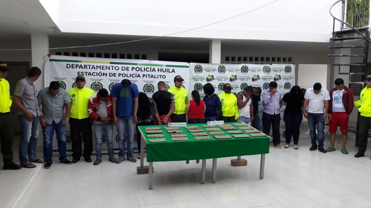 En el municipio de Pitalito, se logró la aprehensión de 11 individuos y un adolescente, dos en el departamento del Cauca, dos en Putumayo y una más en la ciudad de Bogotá. Además se le imputó cargos a seis individuos más que ya se encontraban privados de la libertad en centros carcelarios del Huila.