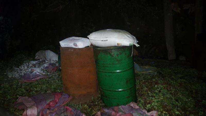 Los militares incautaron en el lugar 625 kilos de hoja de coca, 480 galones de Pasta Base de Coca en proceso, 350 kilos de cemento, 40 galones de gasolina, dos prensas de hierro y 14 canecas metálicas.