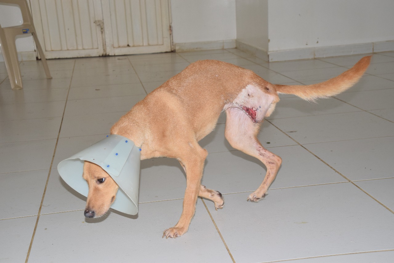 Alegría, duró más de un mes en tratamiento para combatir la infección y recuperar su extremidad, pero fue imposible, el dolor empeoró por la infección. Entonces para que Alegría, tuviera una calidad de vida mejor, tuvieron que amputarle su pata. Actualmente está en el lugar esperando ser adoptada.