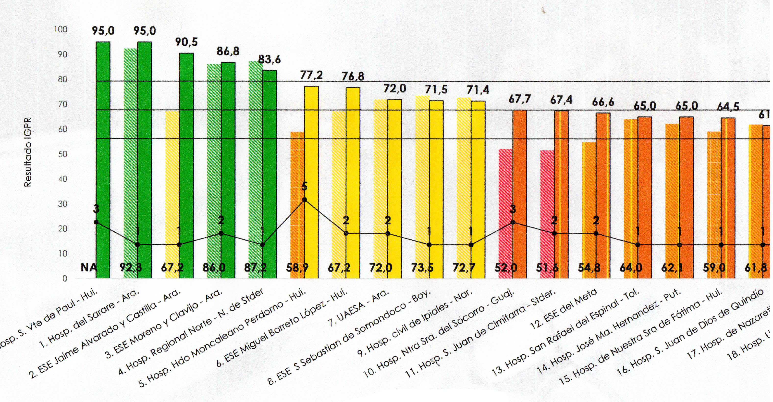 En este índice el reporte del DNP, correspondiente al IV trimestre del 2017, ubica al Hospital San Vicente de Paúl, en el primer lugar a nivel nacional con 95.0 puntos rango sobresaliente puesto que comparte con igual puntaje con el hospital de Sarare Arauca.