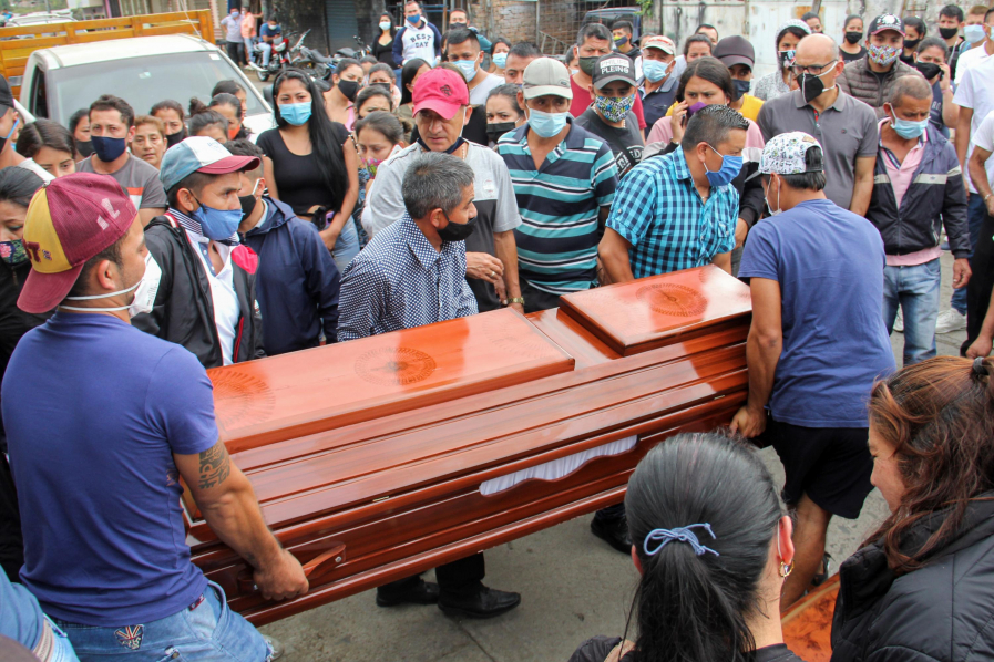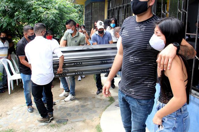 Los féretros estaban rodeados de ramos de flores y con fotografías de los jóvenes. La masacre de Samaniego es la segunda que se presenta esta semana en Colombia, luego de que el 11 de agosto cinco menores de edad fueran asesinados en un barrio de la ciudad de Cali.