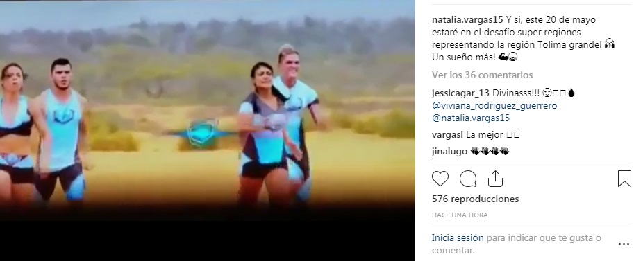 “Y sí, este 20 de mayo estaré en el Desafío Súper Regiones representando la Región Tolima Grande. Un sueño más”, fue el mensaje de la destacada deportista en su cuenta de Instagram @Natalia.vargas15.