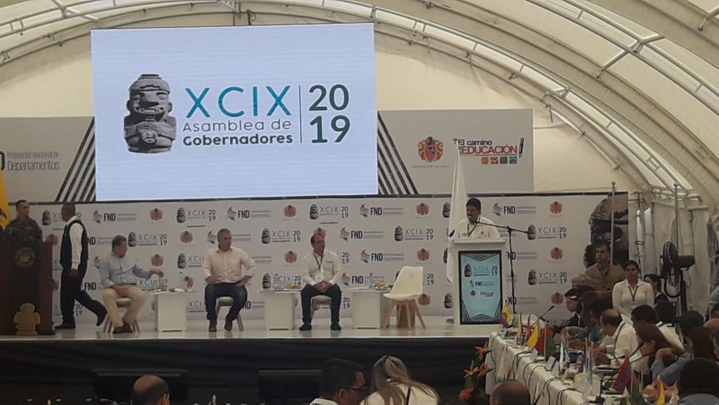 El presidente Iván Duque ya se encuentra presidiendo la Asamblea Nacional de Gobernadores que se lleva a cabo en San Agustín, y en la cual participan todos los gobernadores de los 32 Departamentos de Colombia. Asimismo, se cuenta con la presencia del presidente del Congreso Ernesto Macías.