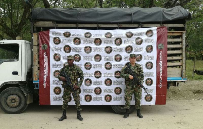 Los uniformados lograron en la vereda Tres Esquinas de Algeciras la inmovilización de 11 semovientes que eran transportados en un vehículo tipo camión sin la guía expedida por la autoridad competente. En las acciones para proteger el medio ambiente en la vereda Bajo Santa Lucia de Garzón, tropas del Batallón Especial Energético y Vial No. 12, capturaron a dos hombres y decomisaron una retroexcavadora y una volqueta, maquinaria empleada para extraer recebo sin el respecto permiso de la autoridad ambiental.