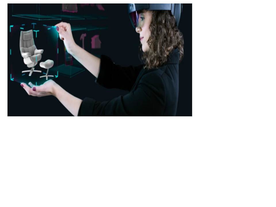 Con la realidad mixta, se pueden seleccionar muebles que son virtuales visualizándolos y viéndolos como lucen en el mundo físico.