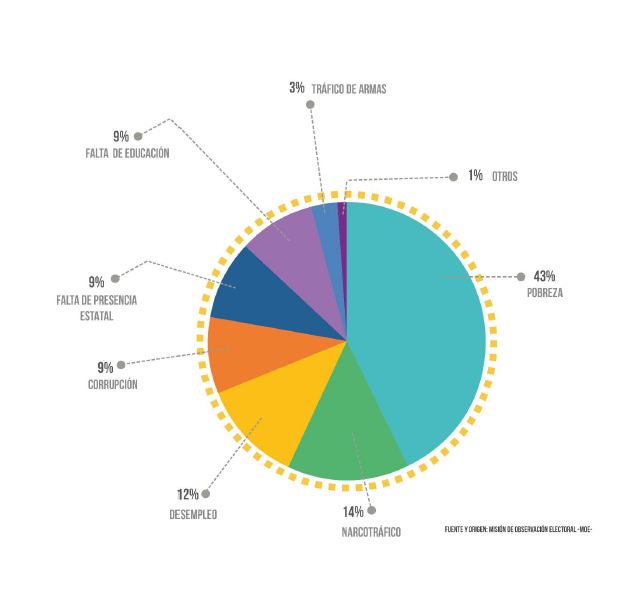 En orden descendiente, los siguientes temas que se deben tratar son: Corrupción, Falta de presencia estatal, Falta de educación, Minería Ilegal, Tráfico de armas.