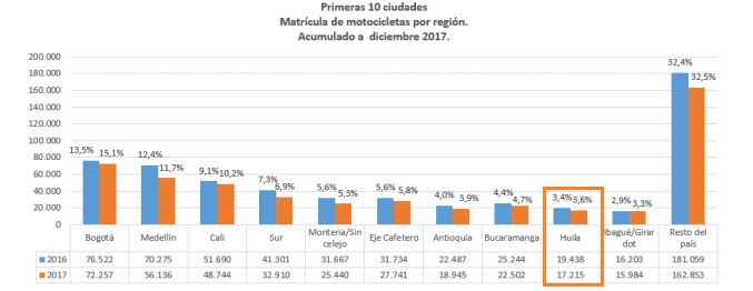 En 2017 disminuyó matrícula de motocicletas nuevas en el Huila