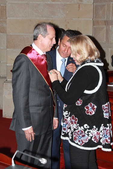La distinción al burgomaestre huilense fue entregada por la Sociedad Colombiana de Prensa y Medios de Comunicación a través de la presidenta de esa asociación Martha Blanco viuda de Simmonds.